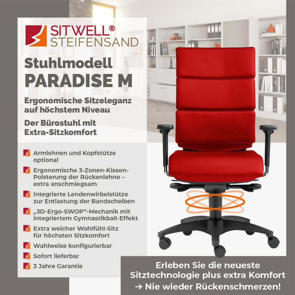 Seit mehr als 30 Jahren engagiert sich die SITWELL® STEIFENSAND AG für die Schaffung hochwertiger anatomischer Sitzsysteme, die Funktionalität mit ästhetischem Anspruch und Dauerhaftigkeit fusionieren. Eine charakteristische Besonderheit unserer exklusiven Ausführungen liegt in der Verarbeitung erstklassiger Materialien – von vorzüglichem Bonded Leather bis zu atmungsaktiven Geweben –, wodurch wir Premium-Standards direkt aus dem deutschsprachigen Raum verbürgen.